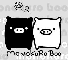 Quienes son?, que son? Que hacen aqui?... Hay muchas preguntas en mi cabeza!, Ok pues Monokuro Boo son dos personajes creados por San-x, dos cerditos de forma cuadrada que siempre van juntos. A veces aparecen junto a una pequeña abeja. Uno de ellos es blanco y el otro negro. Aparecieron en el 2005, y son una prueba de que los productos kawaii no son obligatoriamente de colores. Su nombre vendría a ser algo parecido a “monocromo” y “boo” que es la onomatopeya japonesa que describe el sonido del cerdo. Su diseño es sencillo a más no poder y los textos que les acompañan también : “Love” , “Boo” o “Enjoy” son algunos ejemplos. En un mundo complejo ellos vienen dando unos mensajes simples y directos. Hay una variante llamada Baby Boo en la que la compañía ha utilizado los colores pastel para sacar siete cerditos de diferentes colores.